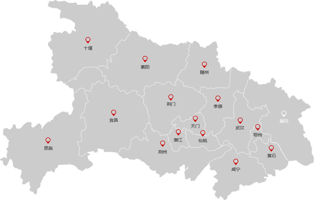 十堰 襄陽 隨州 恩施 宜昌 荊門 孝感 天門 潛江 荊州 仙桃 武漢 鄂州 黃岡 黃石 咸寧