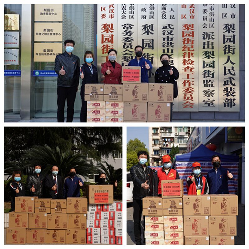 3月16日,黃鶴樓酒業總經理助理、銷售公司常務副總經理王超前往洪山區梨園街、青山區鋼花街和武漢普仁醫院開展暖心慰問活動,并捐贈13萬元防疫物資。