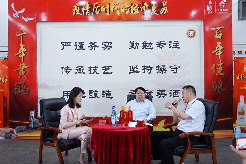 隨后,任永信、許鵬、吳瑾言在天成坊釀造車間以線上抖音直播與線下座談相結(jié)合的方式,就“疫情后時(shí)代的經(jīng)濟(jì)復(fù)蘇”為主題展開討論。許鵬表示,一直以來,黃鶴樓酒堅(jiān)持從選糧源頭開始把控產(chǎn)品品質(zhì),建立糧食基地,確保產(chǎn)品質(zhì)量。后疫情時(shí)代,有危就有機(jī),黃鶴樓酒業(yè)將以良心品質(zhì)、良心服務(wù)回饋社會(huì)、回饋消費(fèi)者。任永信表示,文化關(guān)鍵在化,管理重在于理,后疫情時(shí)代,以文化人以文化心,思想要有流動(dòng)性,社會(huì)要有責(zé)任心,敬天愛人,用溫度和能量促進(jìn)社會(huì)發(fā)展。同時(shí),任永信對(duì)黃鶴樓酒提出純、正、清、香的四字評(píng)價(jià),他表示,與其等待不如乘勢(shì)而上,黃鶴樓酒業(yè)帶著感恩之心與奮進(jìn)之心釀造出精品好酒,堅(jiān)守傳統(tǒng)工藝,傳承楚酒文化。