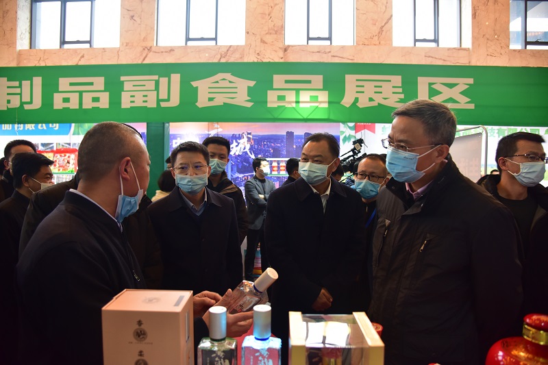 活動現場,王海濤一行參觀指導了企業展臺。在黃鶴樓酒業展臺前,魏國介紹了黃鶴樓酒的釀造工藝及產品特色,展示了黃鶴樓酒的獨特魅力。