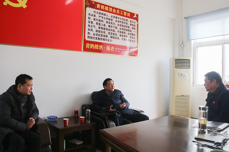 2月9日,隨州市經濟和信息化局黨組成員、總經濟師王洪剛到黃鶴酒業(隨州)有限公司調研企業開工和項目建設情況,隨州高新區經濟發展局局長魏建業陪同調研,黃鶴樓酒業黨委委員、隨州分廠廠長閔波平接待來訪。