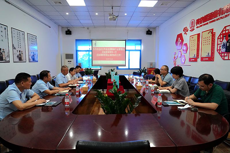 7月26日,武漢市發改委糧食行業管理處處長王必生,副處長孫慧婉、彭玫一行調研黃鶴樓酒業,漢陽區發改局副局長葉方斌陪同調研,公司黨委委員、副總經理魏國出席活動。