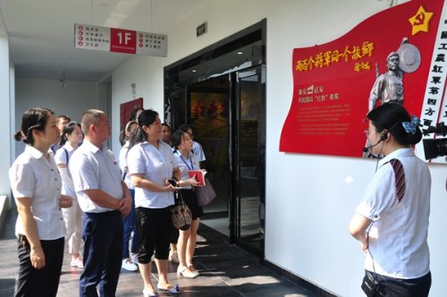 在紅安黨支部書記葉小紅的陪同下,魏國一行首先參觀了紅色展廳、紅色文化長廊、黨團活動室、職工活動室等黨建工作陣地。仔細查閱紅安黨建及“紅旗黨支部”創建工作資料,聆聽了紅安黨支部自創的歌曲《紅色足跡》,詳細了解“三評一贊”工作法、黨員“微承諾”、支部組織生活等基層黨建工作情況。
