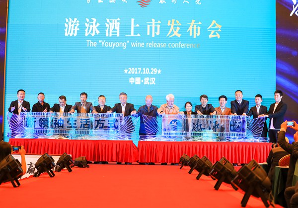 10月29日,由武漢天龍黃鶴樓酒業有限公司主辦、湖北游泳酒股份有限公司承辦的“勇立潮頭 敢為人先——游泳酒上市發布會”在武漢東湖國際會議中心舉辦。參會嘉賓包括白酒界泰斗、茅臺集團終身榮譽董事長季克良、原中國酒業協會白酒專家組組長梁邦昌、中國酒類流通協會秘書長秦書堯、江南大學副校長、瀘州老窖集團副總經理總工程師沈才洪、中國著名白酒專家吳曉萍、酒龍倉集團董事長華滄桑、黃鶴樓酒業董事長許鵬,湖北游泳酒股份有限公司董事長高威等酒業知名人士。