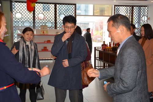 崔烓東與咸寧市外僑辦、閔波平廠長(zhǎng)合影留念,表示將把黃鶴樓酒推向韓國(guó),促進(jìn)中韓兩國(guó)酒文化交流更上層樓。