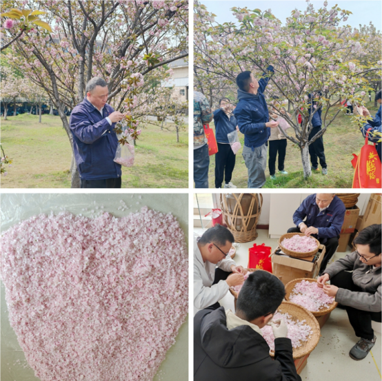 活動現場,技術質量中心相關人員詳細介紹了花瓣分揀標準。隨后,10余名黨員進行分組作業,精心采摘,嚴格篩選出符合釀酒標準的優質花瓣,把好源頭原料關,共采集10余斤優質櫻瓣。