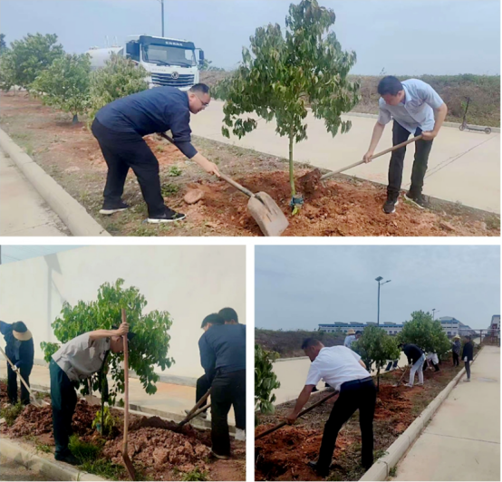 活動現(xiàn)場,全體黨員分為挖樹、種樹兩隊,挖樹隊手持工具,小心將樟樹從一號酒庫施工場地挖起;種樹隊則在污水處理站和糟場同步作業(yè),快速完成扶樹、澆水、填土等工序。最終,在大家的高效協(xié)作下,30余棵樟樹全部移栽到位,充分保障了一號酒庫的順利施工。