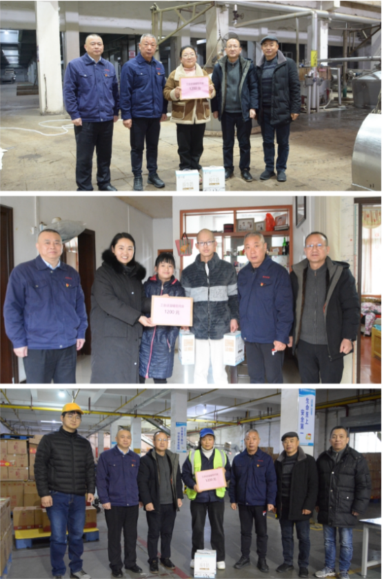 近日,黃鶴樓酒業黨委委員、紀委書記、副總經理、工會主席魏國,黨委委員、咸寧子公司總經理謝毅,酒體設計總工程師李久洪,釀造管理中心總監助理史健一行走訪慰問咸寧子公司困難職工。