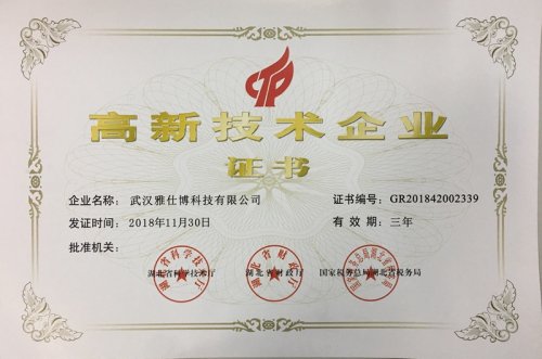 近日,根據《高新技術企業認定管理辦法》(國科發火【2016】32號)和《高新技術企業認定管理工作指引》(國科發火【2016】195號)有關規定,武漢雅仕博科技有限公司被認定為湖北省第二批國家高新技術企業。