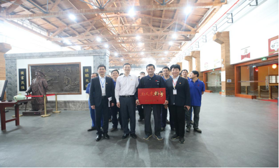 4月26日,湖北省經(jīng)貿(mào)工會主任周溢一行工會領(lǐng)導(dǎo)到黃鶴樓酒業(yè)參觀并為武漢釀酒車間授牌。