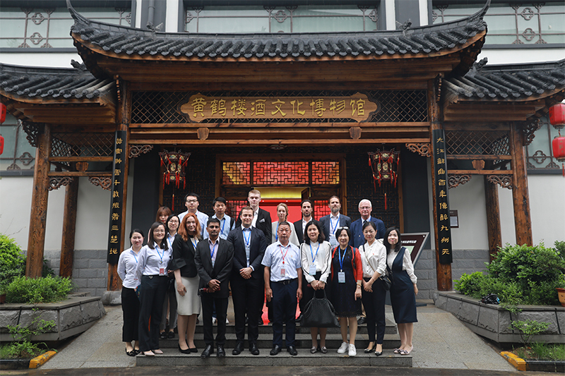 代表團一行參觀了黃鶴樓酒文化博物館、天成坊釀造車間、名人酒窖等地,對黃鶴樓酒業的發展起源、歷史文化、釀造工藝表現出濃厚興趣。參觀期間,魏國向代表團詳細介紹了黃鶴樓酒的使用原料、發酵方式、釀造工藝、窖藏條件及與其它中國白酒的區別。品嘗大清香酒醅及原酒后,代表團紛紛表示口感爽凈純正,的確不同于外國的蒸餾酒。