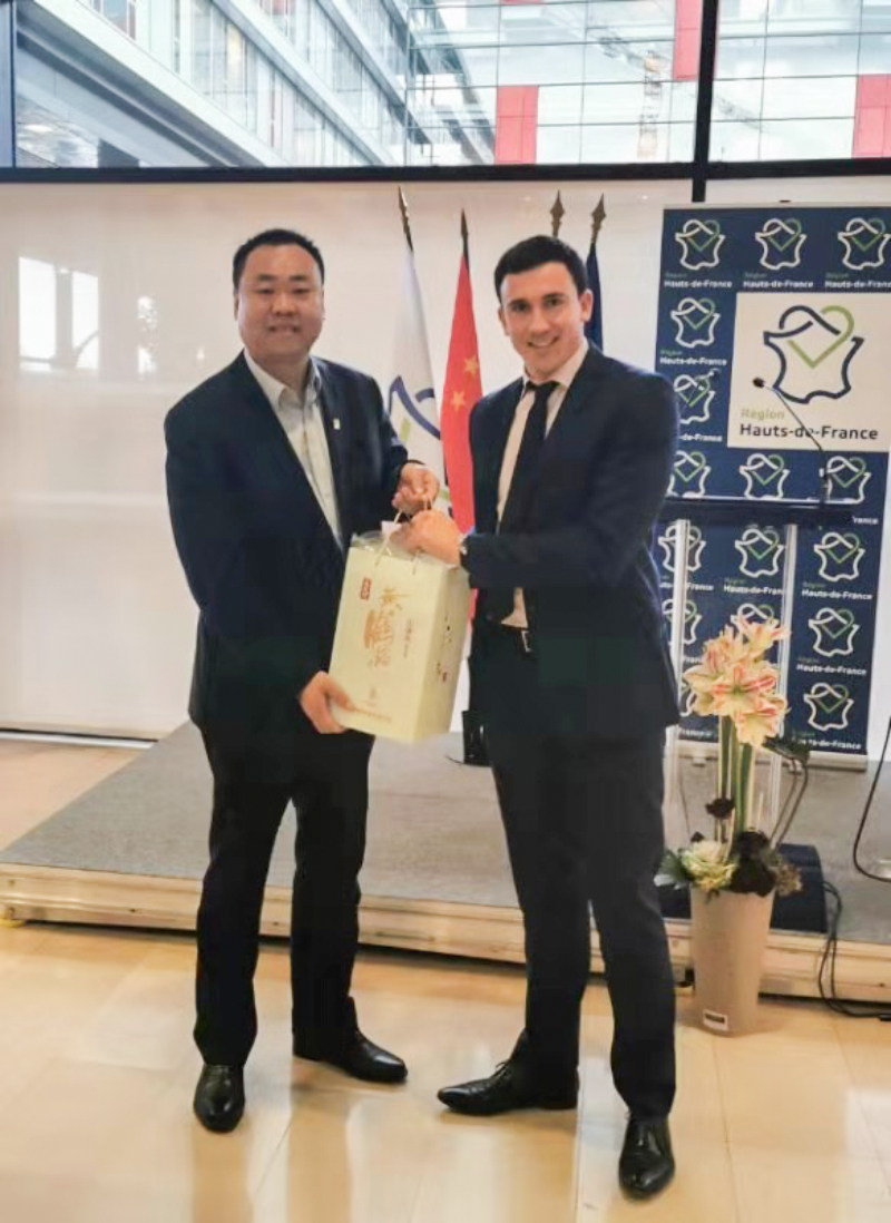 活動期間,許鵬還隨代表團拜訪了法國巴黎大區工商會、巴黎世貿中心、法蘭克福世貿中心、德中經濟聯合會等,開展了項目洽談和對口交流,并贈予相關人員黃鶴樓大清香酒,以示友好。